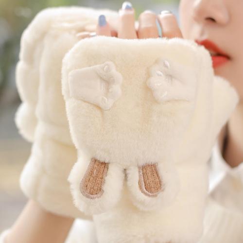 新款圣诞鹿角毛绒手套冬季女款加厚保暖可爱学生骑车