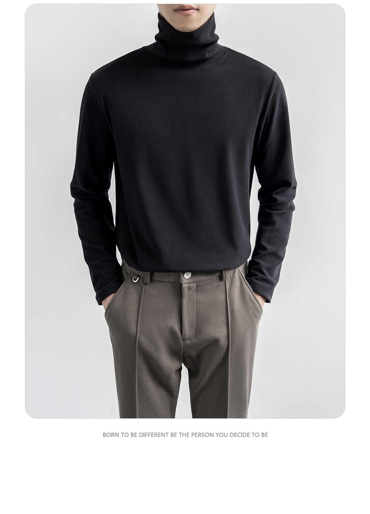 黑色高领双面绒打底衫男2025秋季长袖...