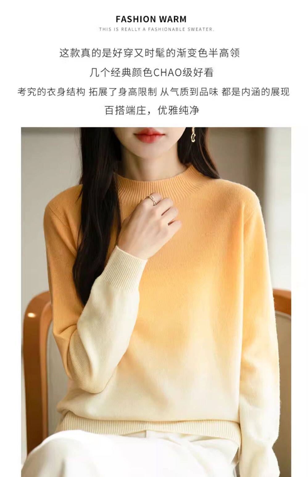 半高领渐变针织打底衫女春秋款内搭洋气大码女装秋冬毛衣