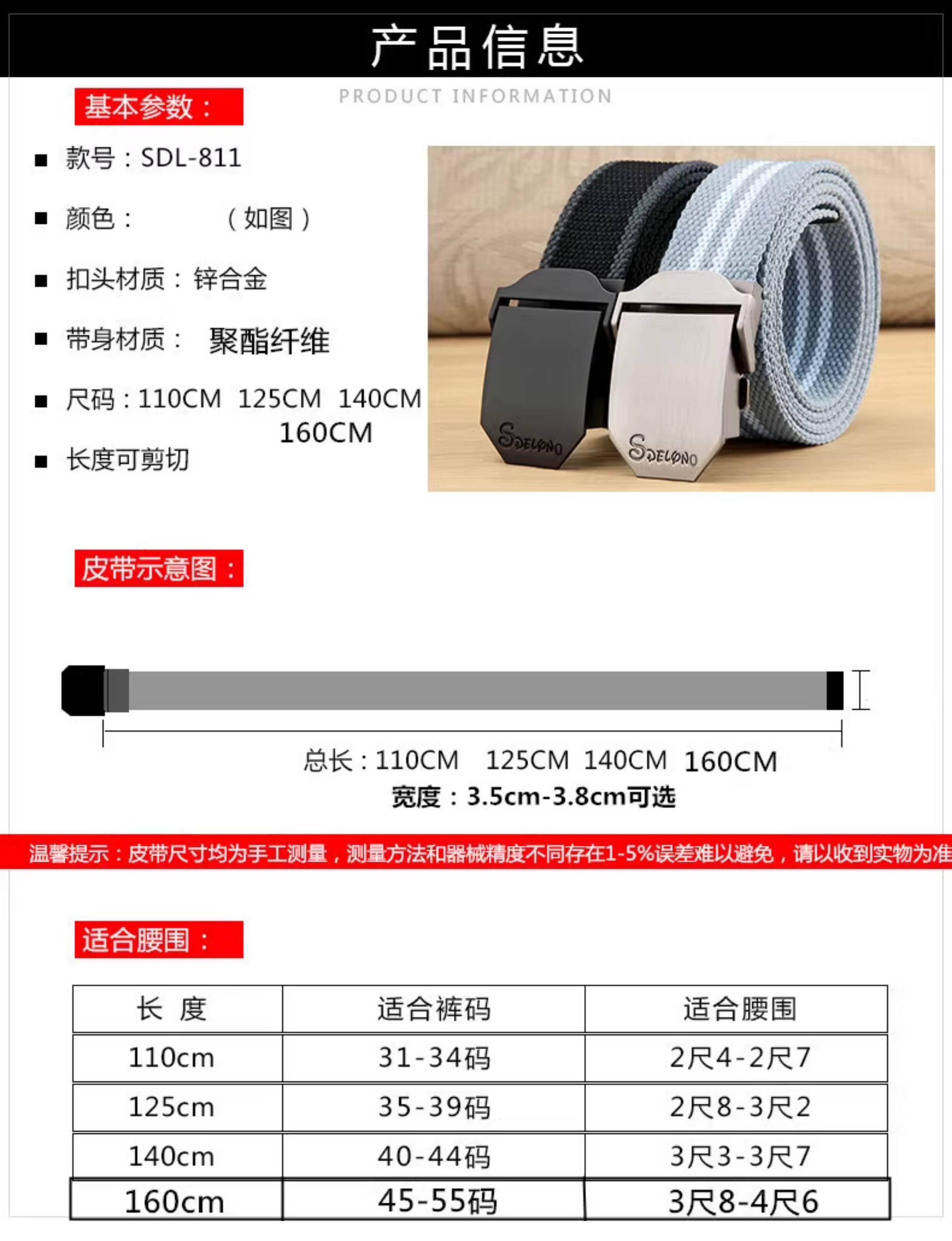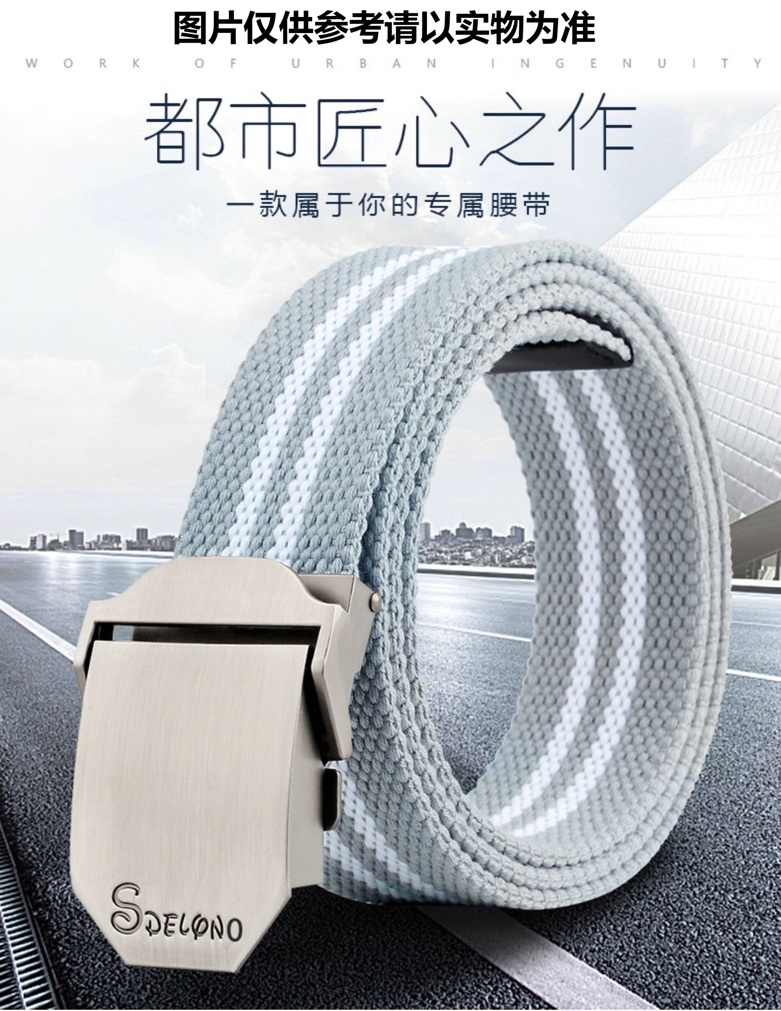 男士帆布腰带平滑扣自动扣皮带简约韩...