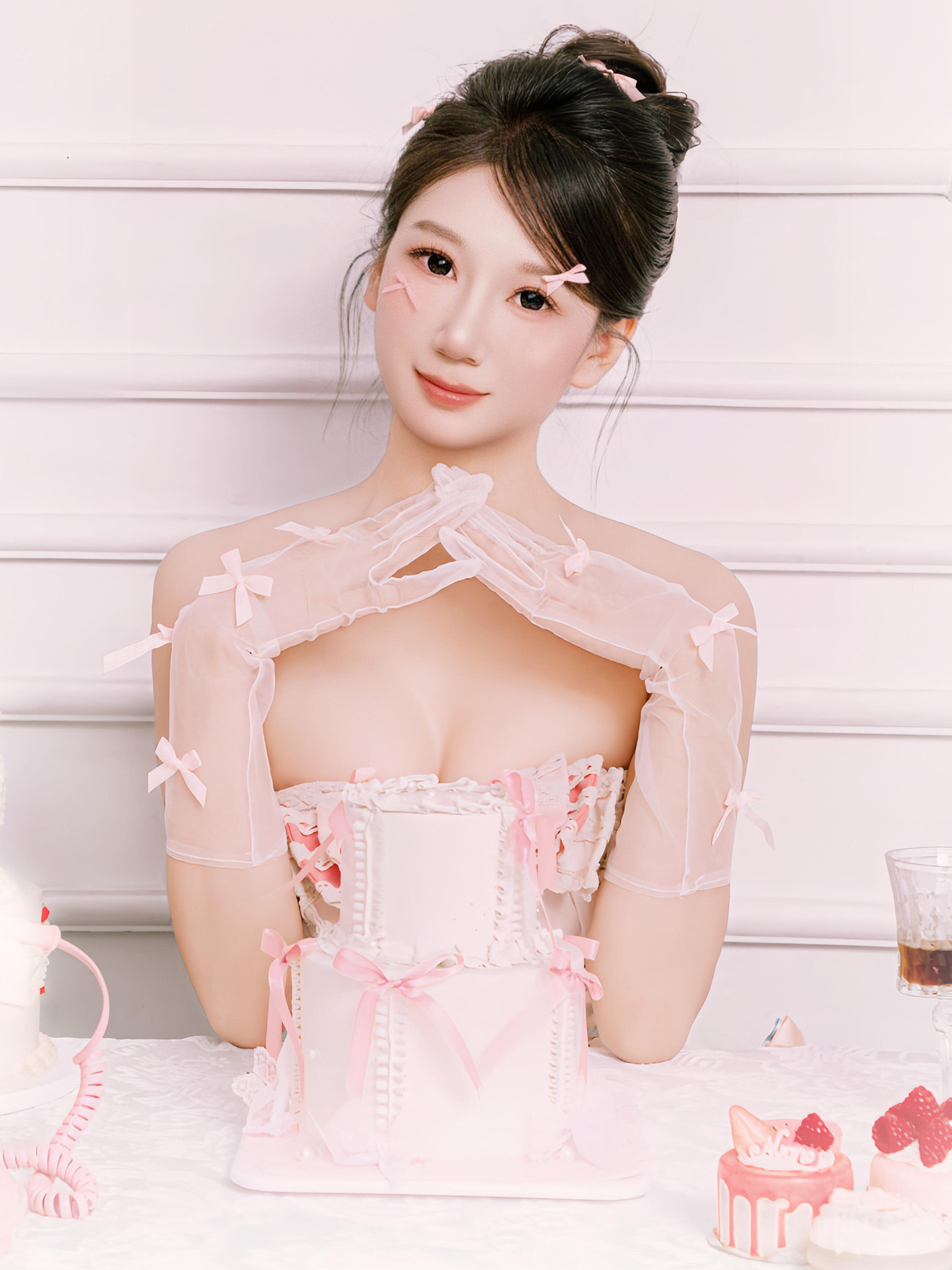 白色婚纱手套蕾丝网纱粉蝴蝶结中长款...