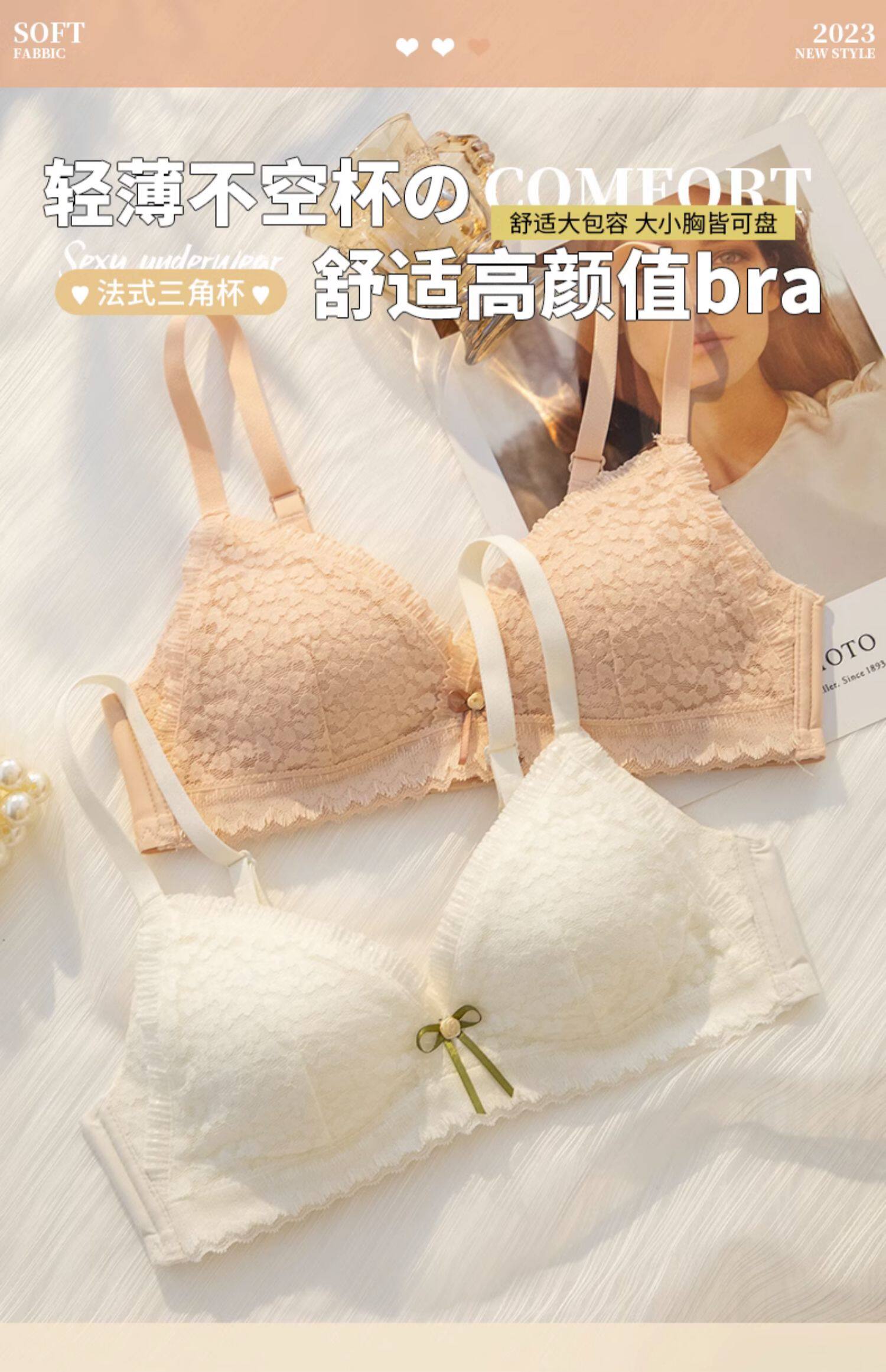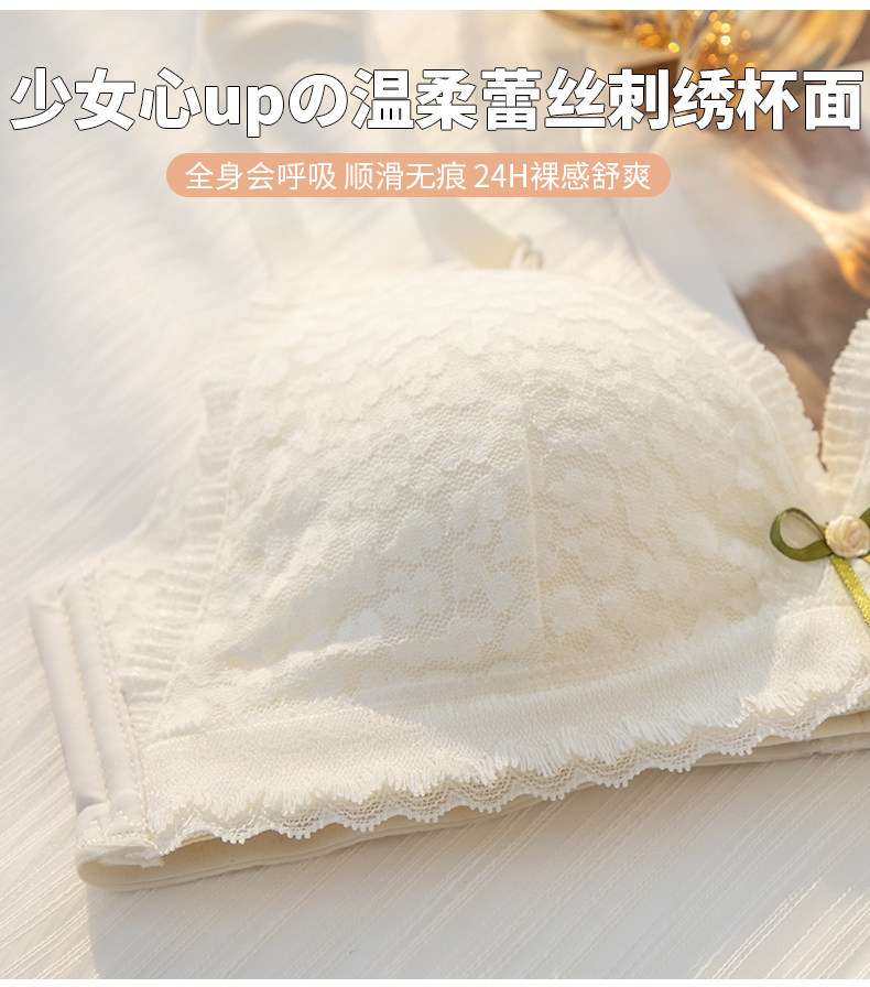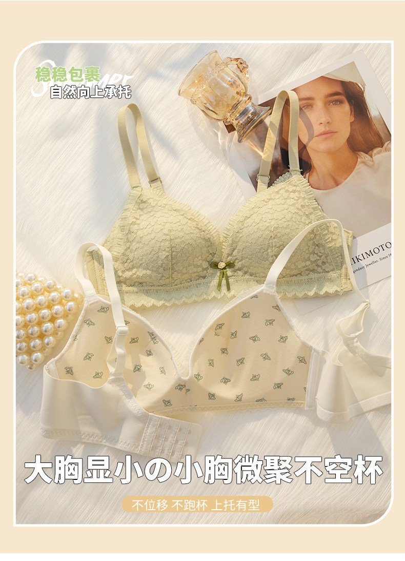 法式甜美内衣裤女无钢圈薄款大胸显小...