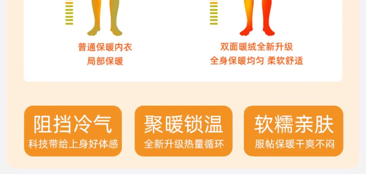 无痕内衣男士套装冬季防寒保暖双面绒...