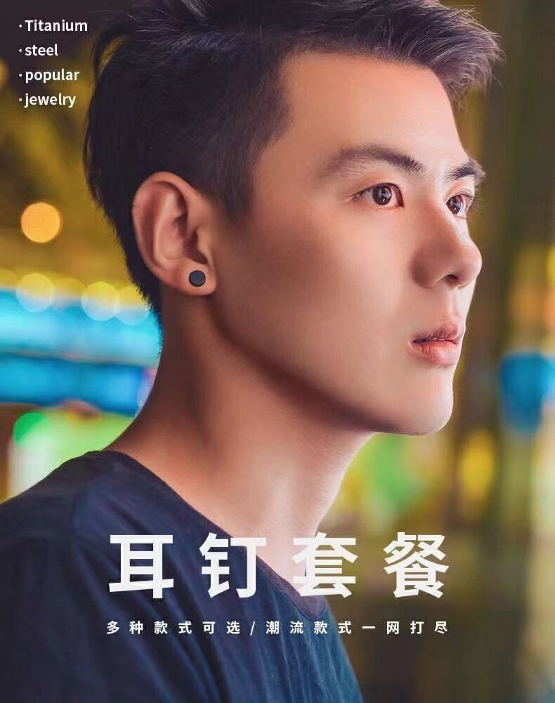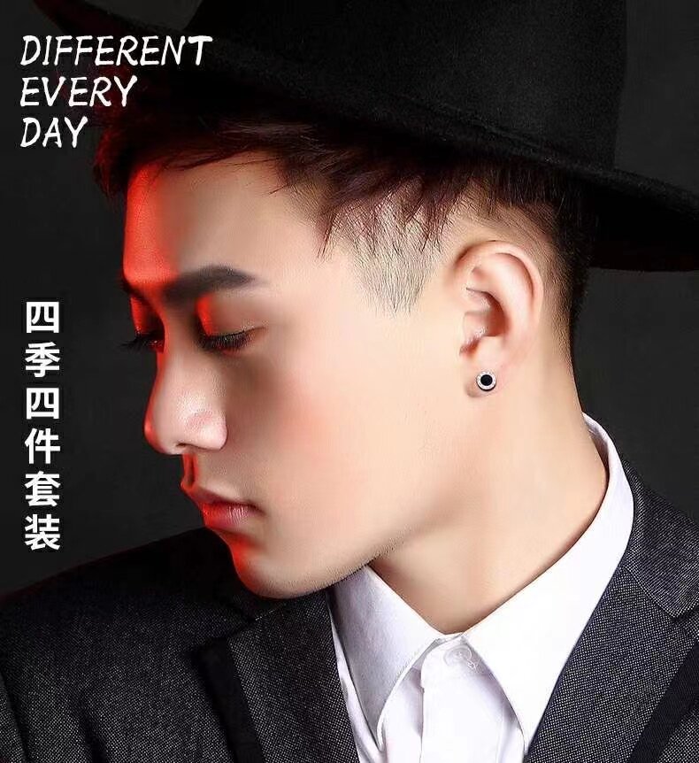 耳钉男款男士新款潮男高级感痞帅风钛钢耳环耳扣组合套装时尚耳饰