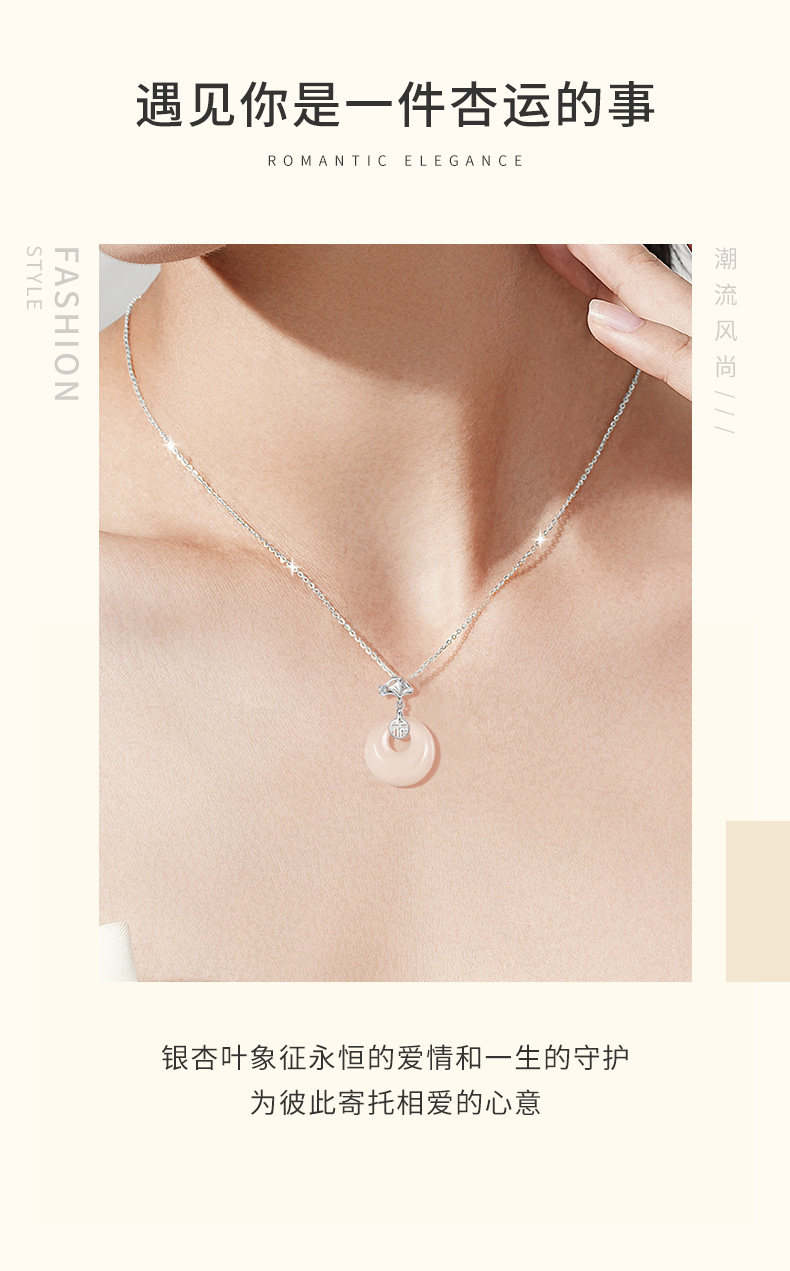 中国黄金福气平安扣项链女轻奢小众纯银毛衣链圣诞生日礼物送女友