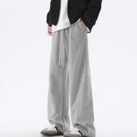 美式弯刀休闲裤子男秋冬季新款宽松直筒加绒灰色运动卫